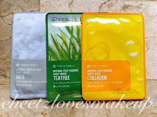 | Natural Pulp Essence Sheet Mask (L-R): Rice, Tea Tree and Collagen |