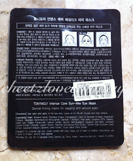 Then i saw this Intensive Care Syn-Ake Eye Mask and it said on the back it is a Special Firming Masks for Sagging skin around eyes. Why not give it a try?